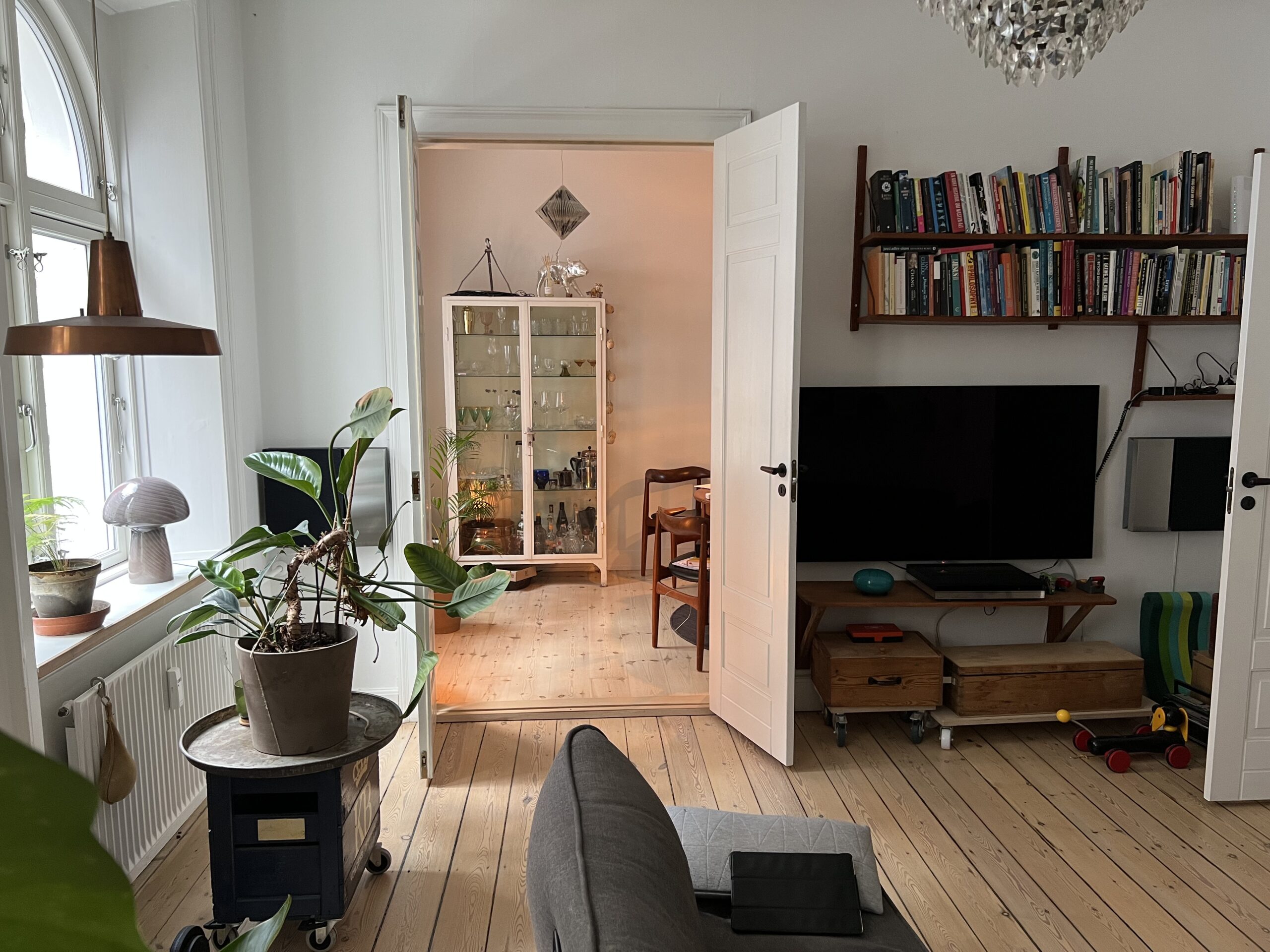 Vi vil gerne downsize fra vores andel på 129m2 / 5v, som ligger centralt i Kbh V på stille vej.