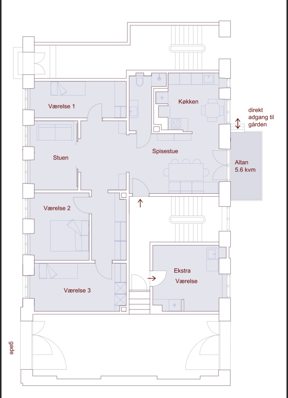 • Altan (Sud-West) med direkte adgang til hyggelig fælles gård🌿, som kun deles med ejendommen